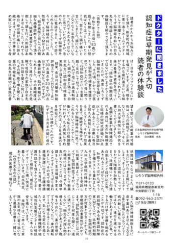 しんぐうライフ最新号!10/12 ドクターに聞きました しろうず脳神経外科