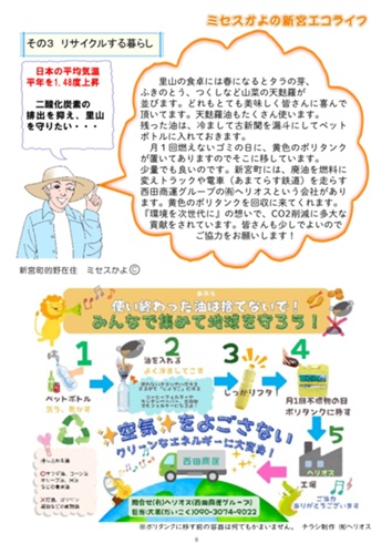 しんぐうライフ最新号!8/12 ミセスかよの新宮エコライフその3 リサイクルする暮らし ヘリオス(西田商運グループ)